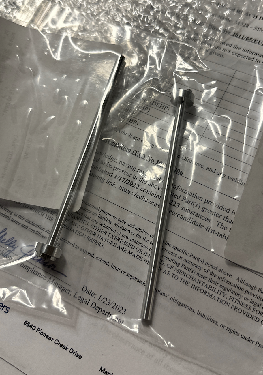 To utilize the rotational input (of 275 Nmm) from the Hugo arm SIM connection (Sterile Interface Module), our team designed and commissioned custom SIM Shafts - pictured above. These shafts are made from aluminum - material chosen due to its machinability given complex '+' head-shapes, and internal strength great enough to ranslate required forces.